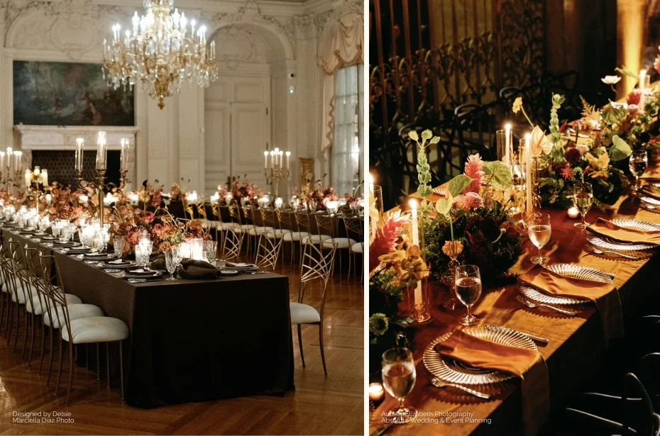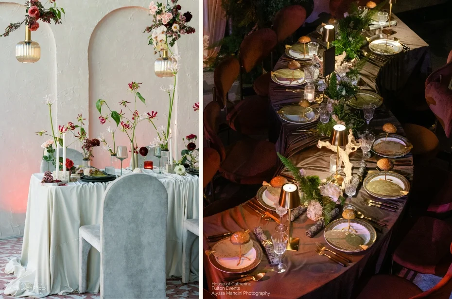 Whether you’re planning a black-tie winter wedding, a dinner series for your closest friends, or a brand event with editorial edge, these are the tablescape trends we’re seeing, and styling on repeat.