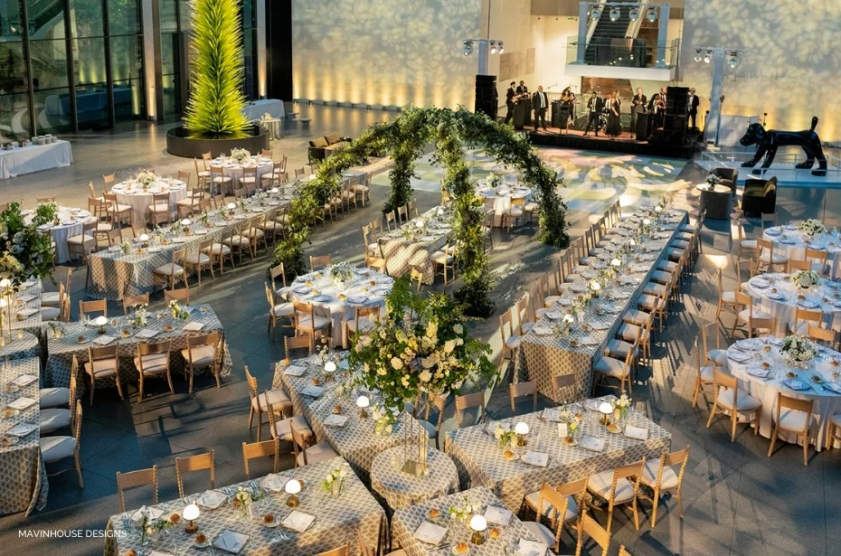 - The wedding reception benefits from restraint. This is the moment where timeless design matters most, where the tables feel enduring, refined, and grounded. Neutral linens with beautiful drape and elevated texture create a classic foundation, allowing the celebration to age gracefully while still leaving room for personality to shine through thoughtful details.