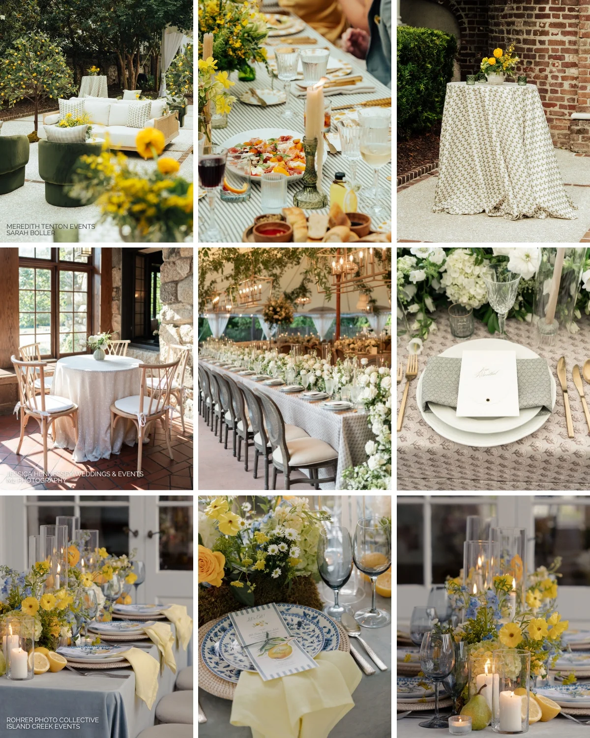 Color is most impactful when it’s used selectively, not everywhere at once. Bold, trend-forward hues shine at social moments like welcome parties and rehearsal dinners, where energy and personality set the tone. This is where brighter notes (think the fresh citrus shades we’re seeing everywhere), feel effortless rather than over-styled. For the main celebration, a quieter palette creates a sense of ease and longevity. Neutral linens ground the space, allowing the design to feel refined and enduring. Rather than leading with color, let it appear in supporting roles—through napkins, runners, or accent tables, adding warmth and dimension without overwhelming the room.