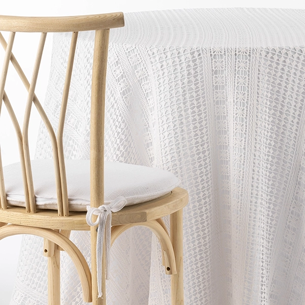 What bohemian dreams are made of. Our Bohemian White Linen features a delicate, crocheted pattern and is available as table runners and full linens. Keep your tabletop looking neutral with a white linen underlay, or add a pop of color with a bold solid linen (or even a pattern!) for added dimension and interest at your event.