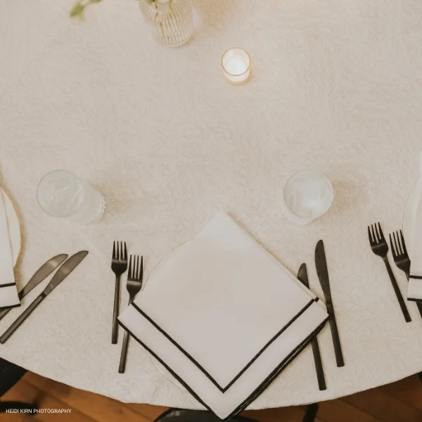 We know not everyone is a designer. That’s where we come in. Like the linens you see on this page? We’ve created collections with carefully curated linen pairings to take the guess work out of setting the table. We are also just a phone call or email away and are here to talk through your event and to help you pick the perfect linens.