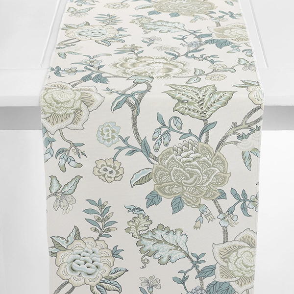 Jasper Flora Celadon puts a fresh twist on a classic Jacobean floral, blending soft celadon with muted tan, green, and blue. The palette feels calm and collected, while the pattern brings just enough movement to keep things interesting. Timeless with a coastal lean, it’s an easy choice for garden weddings, seaside celebrations, and elevated events that favor layered pattern over loud statements. Mix and match with Azores, Patchwork Moss, or Seabreeze to play up the coastal mood.
