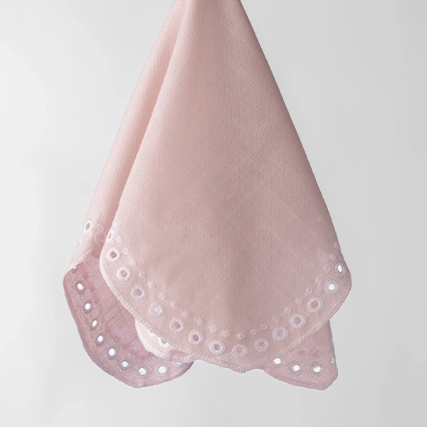 Meet our gal Sadie, where sophisticated and sweet combine into one adorable little napkin. Featuring scalloped edges and eyelet embroidery details, this warm, light pink napkin is guaranteed to add a punch of preppiness and charm to place settings. Whether you’re hosting a ladies’ luncheon, birthday party, baby shower or just want to add a touch of whimsy to your wedding tablescape, this beaut guarantees to upgrade your table design.